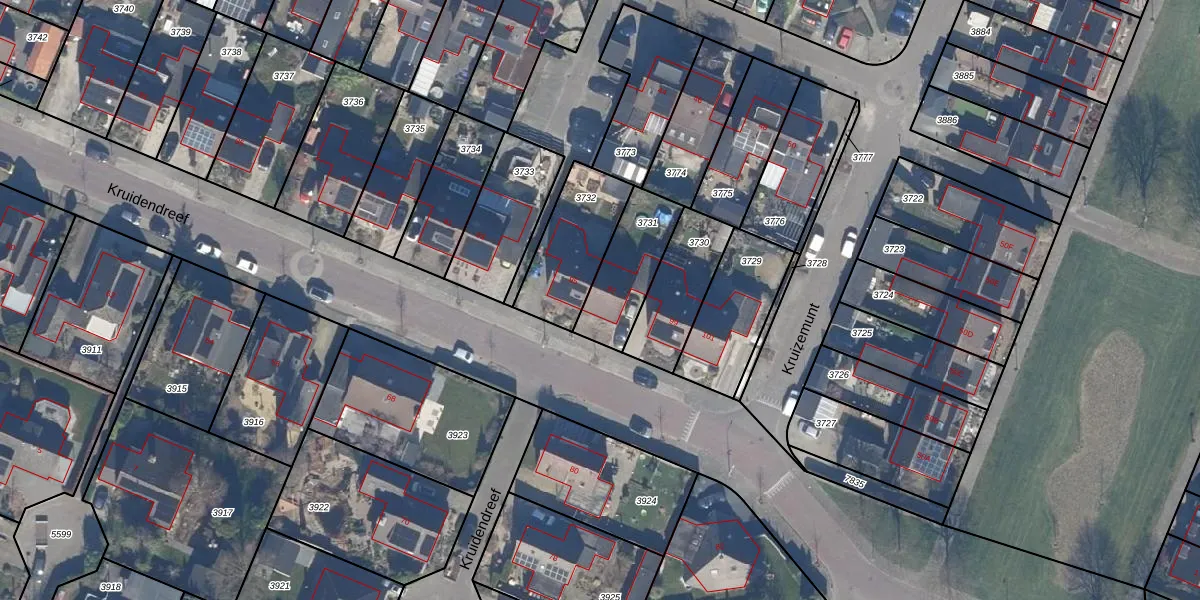 Kruidendreef 97 is gelegen op kadastraal perceel DTN01A3731. Deze kadastrale aanduiding is uniek en wordt gebruikt door het Kadaster om eigendomsrechten en andere zakelijke rechten vast te leggen. Het perceel maakt onderdeel uit van de kadastrale gemeente Dronten.
