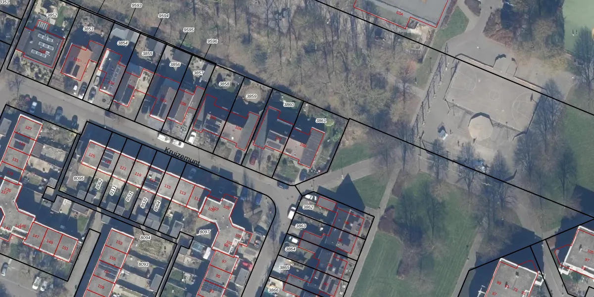 Het perceel waarop Kruizemunt 100 staat heeft een oppervlakte van 420 m². Dit is een groot perceel. De perceeloppervlakte wordt geregistreerd door het Kadaster. Gedetailleerde informatie over de maten van dit perceel kunt u vinden in het rapport Kadastrale kaart met maatvoering van Kruizemunt 100.