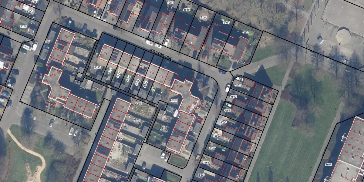 Het perceel waarop Kruizemunt 109 staat heeft een oppervlakte van 1447 m². Dit is een zeer groot perceel. De perceeloppervlakte wordt geregistreerd door het Kadaster. Gedetailleerde informatie over de maten van dit perceel kunt u vinden in het rapport Kadastrale kaart met maatvoering van Kruizemunt 109.