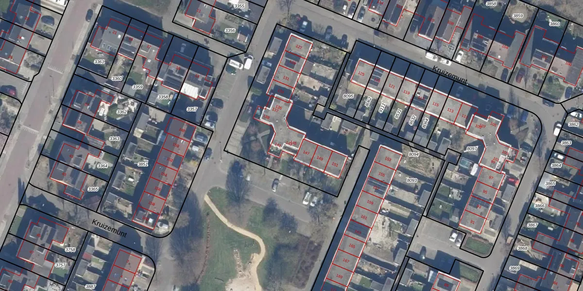 Het perceel waarop Kruizemunt 143 staat heeft een oppervlakte van 3260 m². Dit is een zeer groot perceel. De perceeloppervlakte wordt geregistreerd door het Kadaster. Gedetailleerde informatie over de maten van dit perceel kunt u vinden in het rapport Kadastrale kaart met maatvoering van Kruizemunt 143.