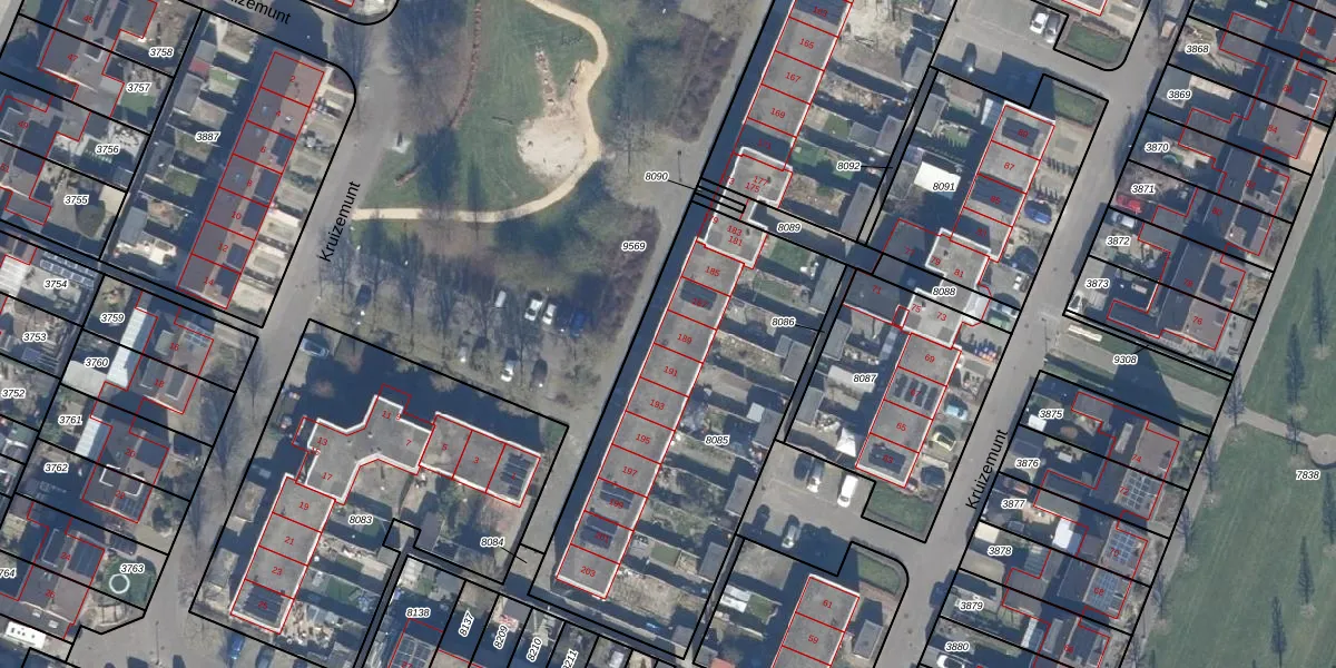 Kruizemunt 189 is gelegen op kadastraal perceel DTN01A8085. Deze kadastrale aanduiding is uniek en wordt gebruikt door het Kadaster om eigendomsrechten en andere zakelijke rechten vast te leggen. Het perceel maakt onderdeel uit van de kadastrale gemeente Dronten.
