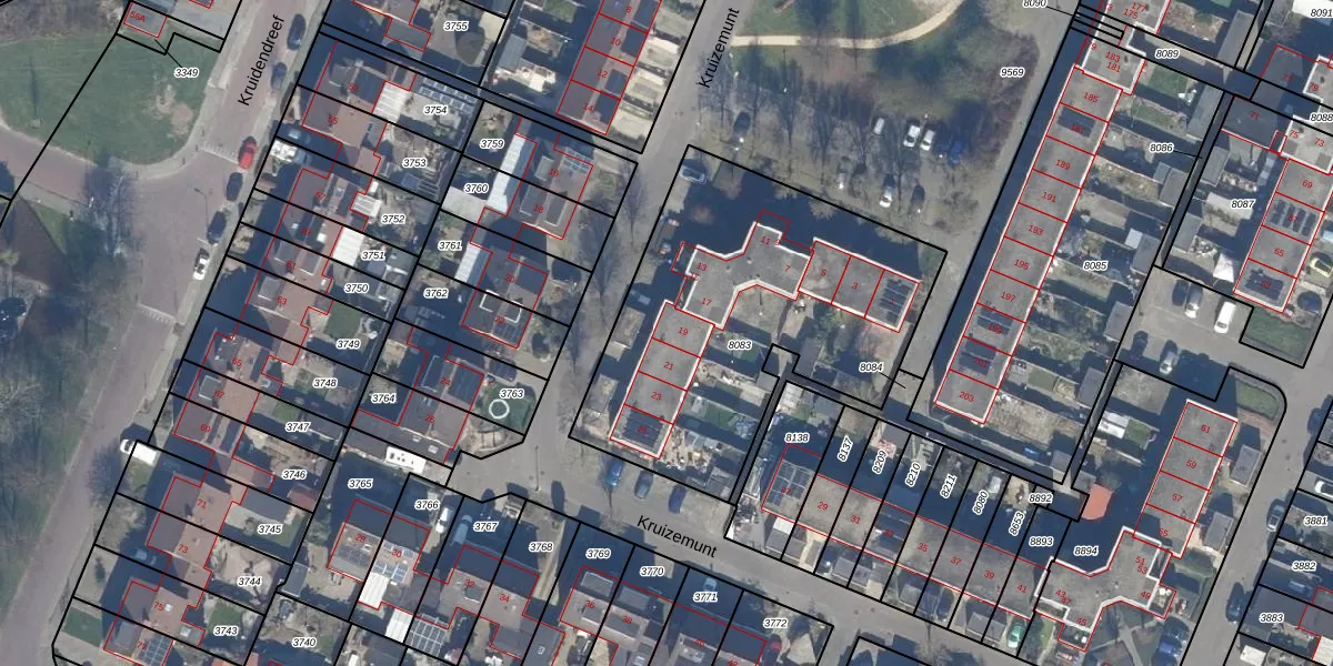 Het perceel waarop Kruizemunt 19 staat heeft een oppervlakte van 1620 m². Dit is een zeer groot perceel. De perceeloppervlakte wordt geregistreerd door het Kadaster. Gedetailleerde informatie over de maten van dit perceel kunt u vinden in het rapport Kadastrale kaart met maatvoering van Kruizemunt 19.