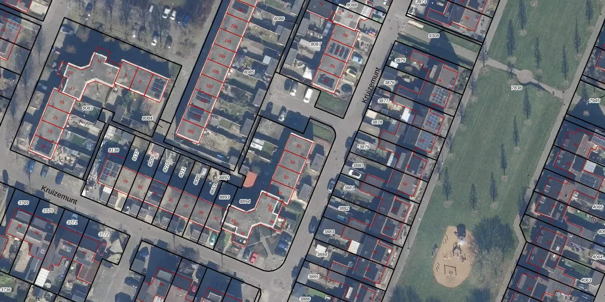 Het perceel waarop Kruizemunt 61 staat heeft een oppervlakte van 1181 m². Dit is een zeer groot perceel. De perceeloppervlakte wordt geregistreerd door het Kadaster. Gedetailleerde informatie over de maten van dit perceel kunt u vinden in het rapport Kadastrale kaart met maatvoering van Kruizemunt 61.