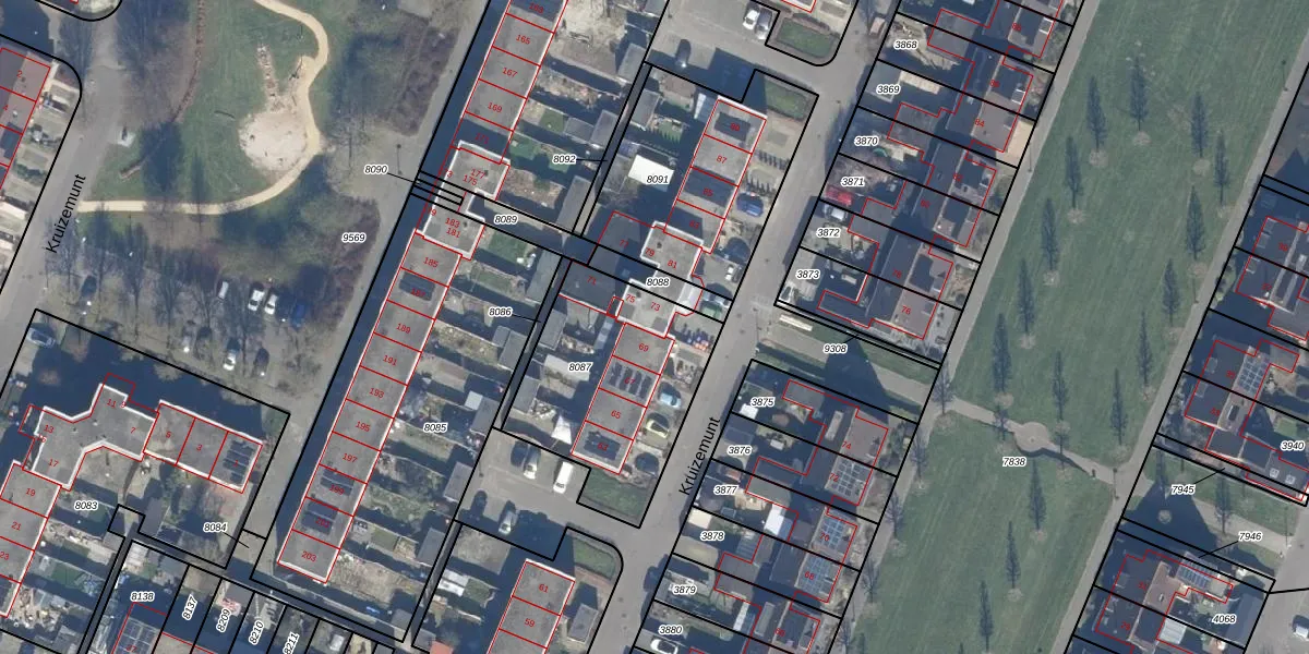 Het perceel waarop Kruizemunt 75 staat heeft een oppervlakte van 773 m². Dit is een groot perceel. De perceeloppervlakte wordt geregistreerd door het Kadaster. Gedetailleerde informatie over de maten van dit perceel kunt u vinden in het rapport Kadastrale kaart met maatvoering van Kruizemunt 75.