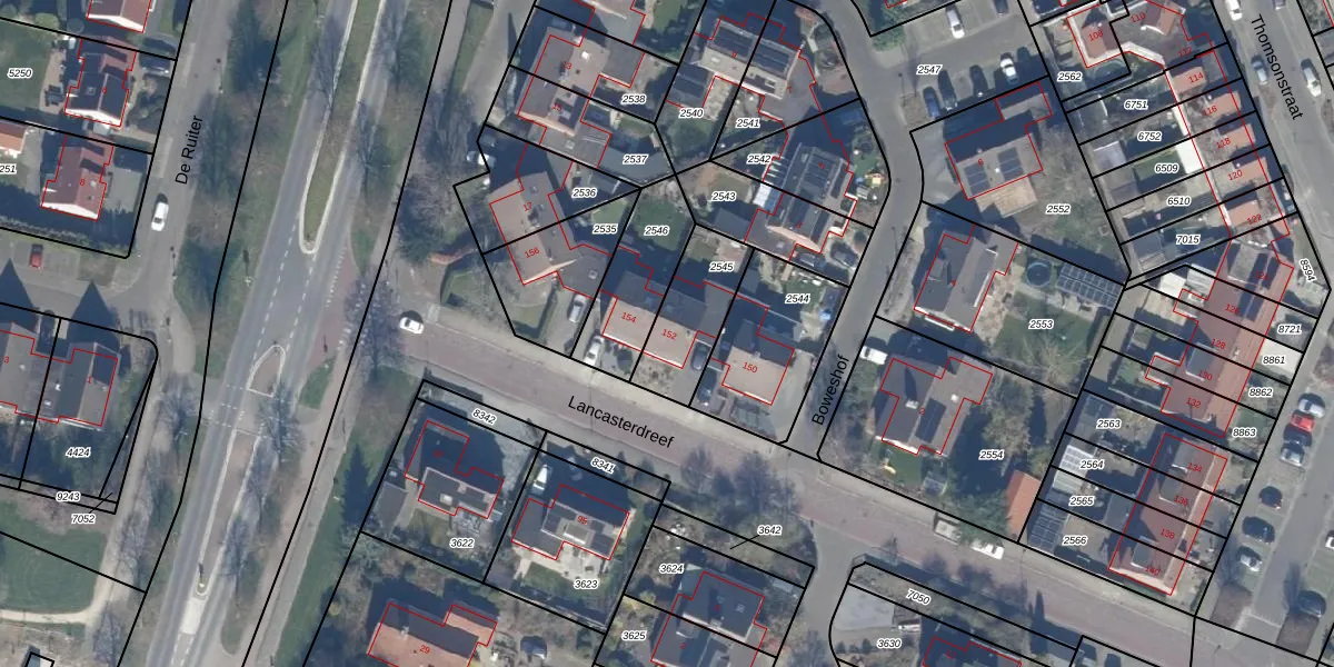 Lancasterdreef 152 is gelegen op kadastraal perceel DTN01A2545. Deze kadastrale aanduiding is uniek en wordt gebruikt door het Kadaster om eigendomsrechten en andere zakelijke rechten vast te leggen. Het perceel maakt onderdeel uit van de kadastrale gemeente Dronten.