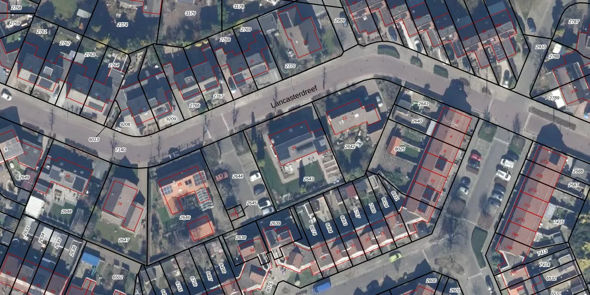 Lancasterdreef 20 is gelegen op kadastraal perceel DTN01A2643. Deze kadastrale aanduiding is uniek en wordt gebruikt door het Kadaster om eigendomsrechten en andere zakelijke rechten vast te leggen. Het perceel maakt onderdeel uit van de kadastrale gemeente Dronten.