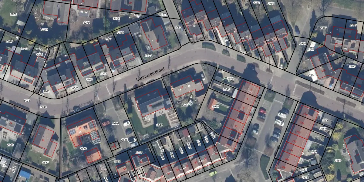 Lancasterdreef 22 is gelegen op kadastraal perceel DTN01A2642. Deze kadastrale aanduiding is uniek en wordt gebruikt door het Kadaster om eigendomsrechten en andere zakelijke rechten vast te leggen. Het perceel maakt onderdeel uit van de kadastrale gemeente Dronten.