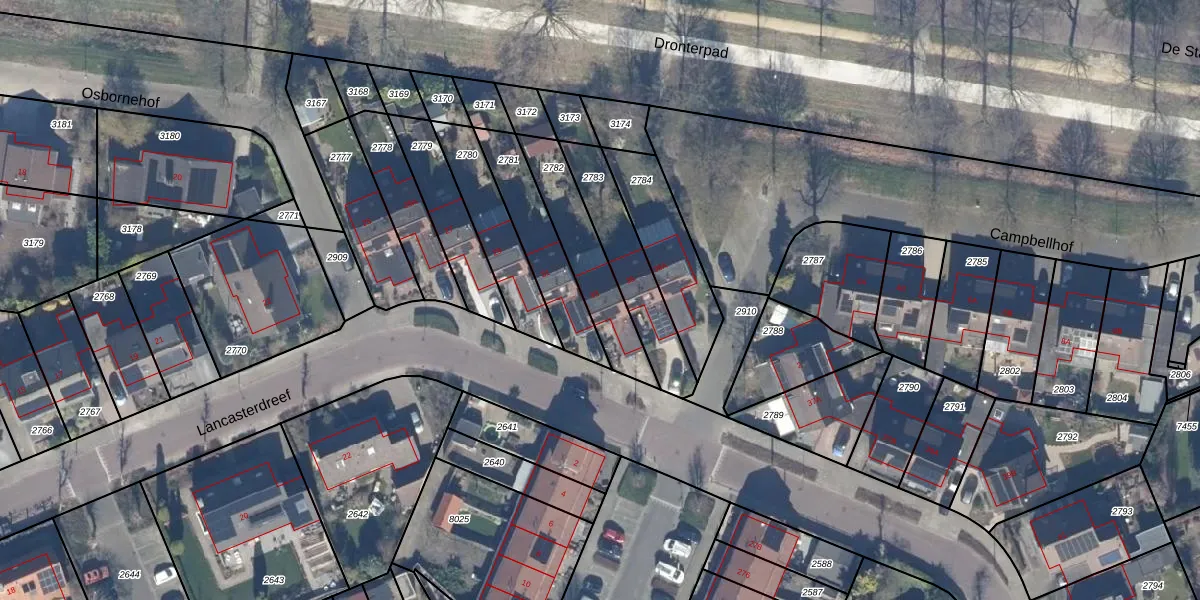 Lancasterdreef 33 is gelegen op kadastraal perceel DTN01A2782. Deze kadastrale aanduiding is uniek en wordt gebruikt door het Kadaster om eigendomsrechten en andere zakelijke rechten vast te leggen. Het perceel maakt onderdeel uit van de kadastrale gemeente Dronten.