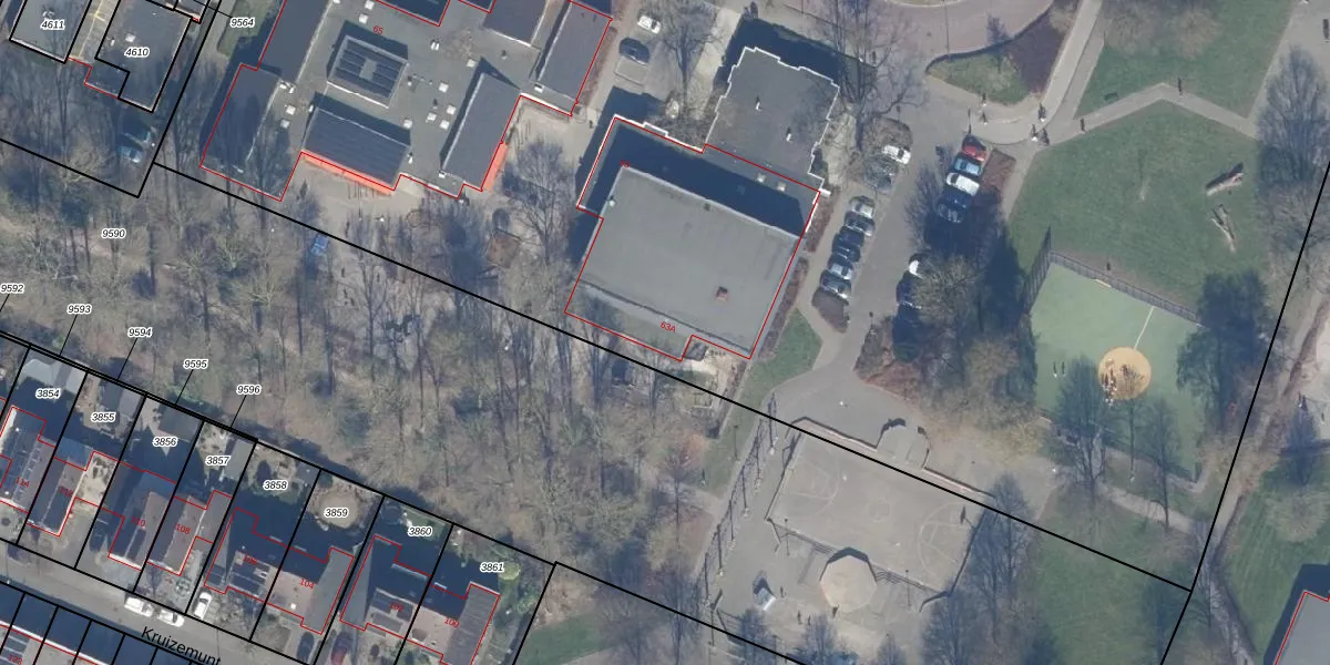 Het perceel waarop Lancasterdreef 63-A staat heeft een oppervlakte van 2,8 ha. Dit is een zeer groot perceel. De perceeloppervlakte wordt geregistreerd door het Kadaster. Gedetailleerde informatie over de maten van dit perceel kunt u vinden in het rapport Kadastrale kaart met maatvoering van Lancasterdreef 63-A.