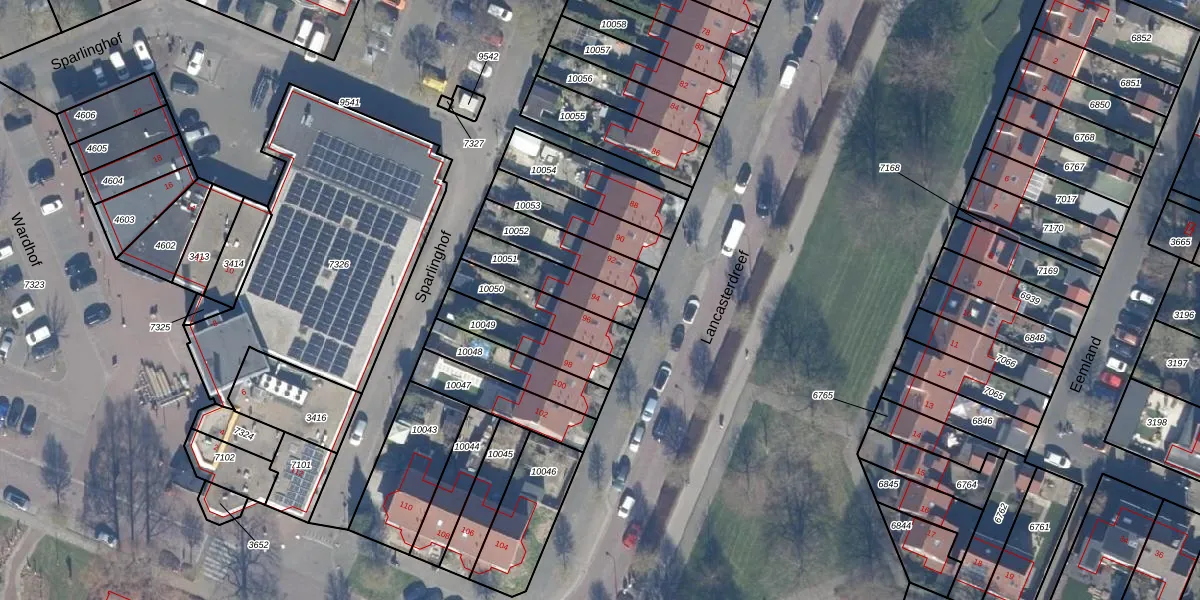 Het perceel waarop Lancasterdreef 94 staat heeft een oppervlakte van 169 m². Dit is een middelgroot perceel. De perceeloppervlakte wordt geregistreerd door het Kadaster. Gedetailleerde informatie over de maten van dit perceel kunt u vinden in het rapport Kadastrale kaart met maatvoering van Lancasterdreef 94.