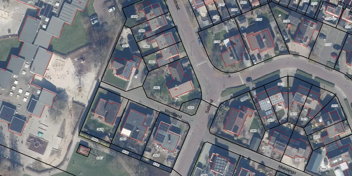 Het perceel waarop Langstraat 66 staat heeft een oppervlakte van 654 m². Dit is een groot perceel. De perceeloppervlakte wordt geregistreerd door het Kadaster. Gedetailleerde informatie over de maten van dit perceel kunt u vinden in het rapport Kadastrale kaart met maatvoering van Langstraat 66.