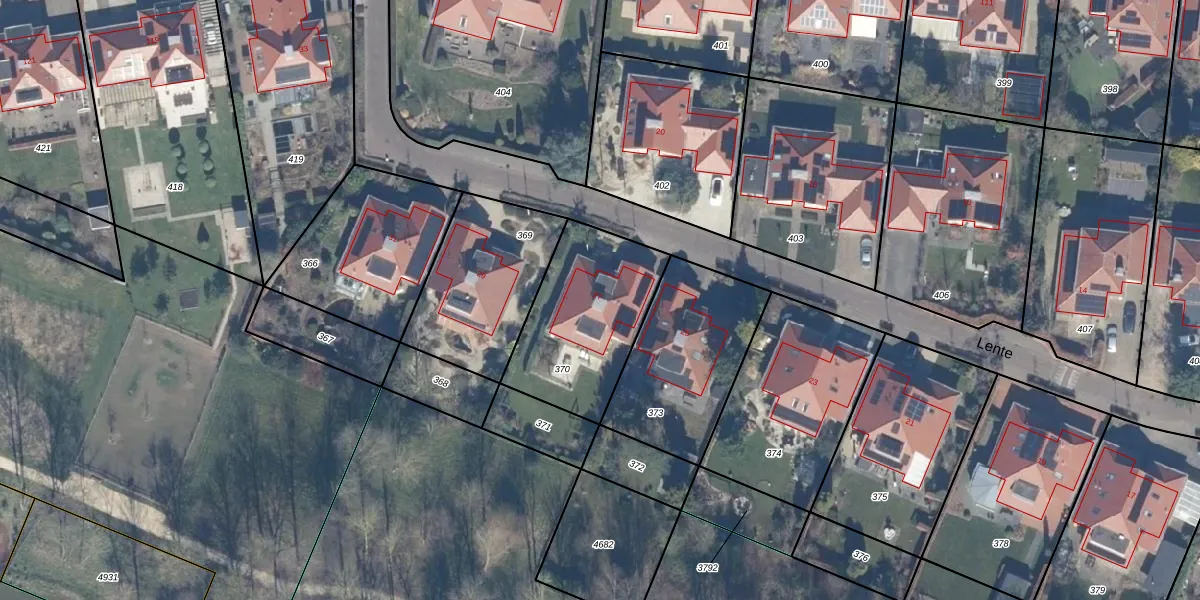 Het perceel waarop Lente 27 staat heeft een oppervlakte van 548 m². Dit is een groot perceel. De perceeloppervlakte wordt geregistreerd door het Kadaster. Gedetailleerde informatie over de maten van dit perceel kunt u vinden in het rapport Kadastrale kaart met maatvoering van Lente 27.