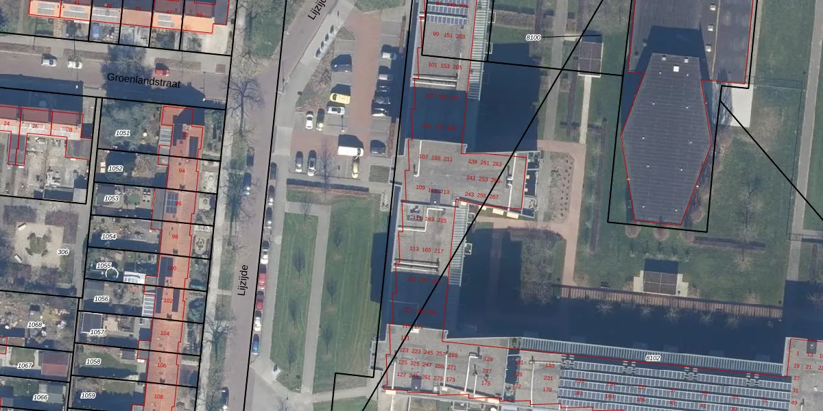 Het perceel waarop Lijzijde 105 staat heeft een oppervlakte van 1,4 ha. Dit is een zeer groot perceel. De perceeloppervlakte wordt geregistreerd door het Kadaster. Gedetailleerde informatie over de maten van dit perceel kunt u vinden in het rapport Kadastrale kaart met maatvoering van Lijzijde 105.