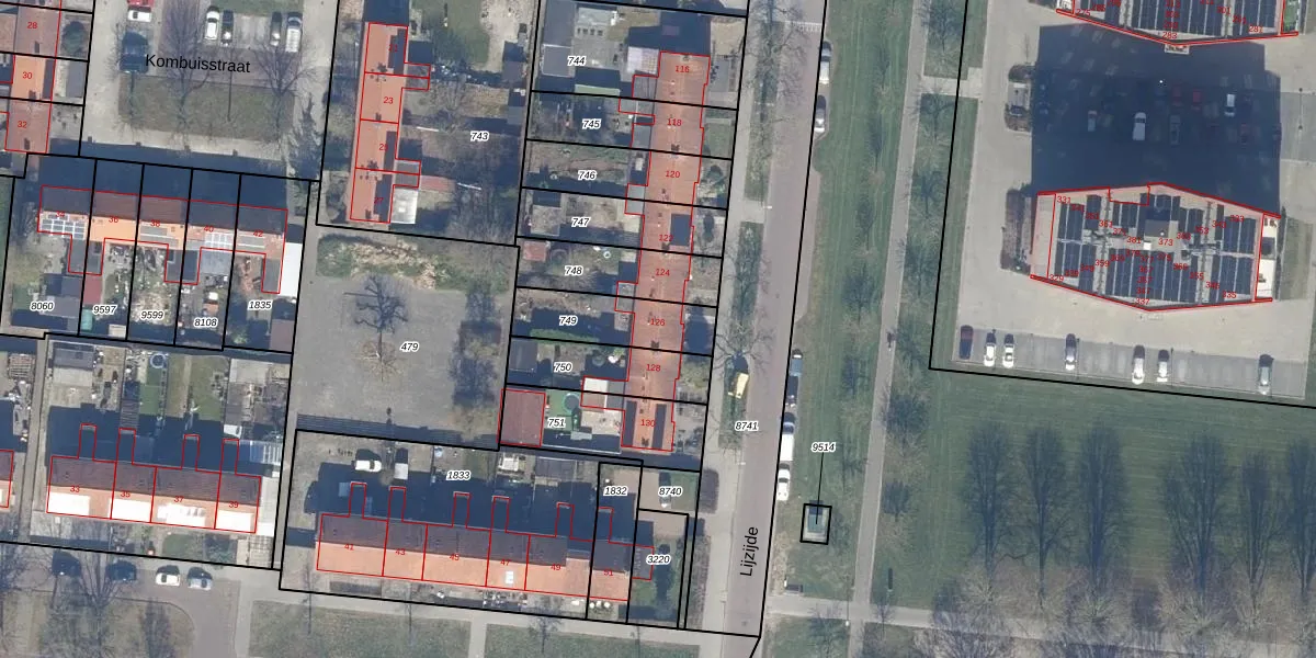 Gebruik de zoekbalk of klik op een perceel voor informatie over de adressen binnen dit perceel.