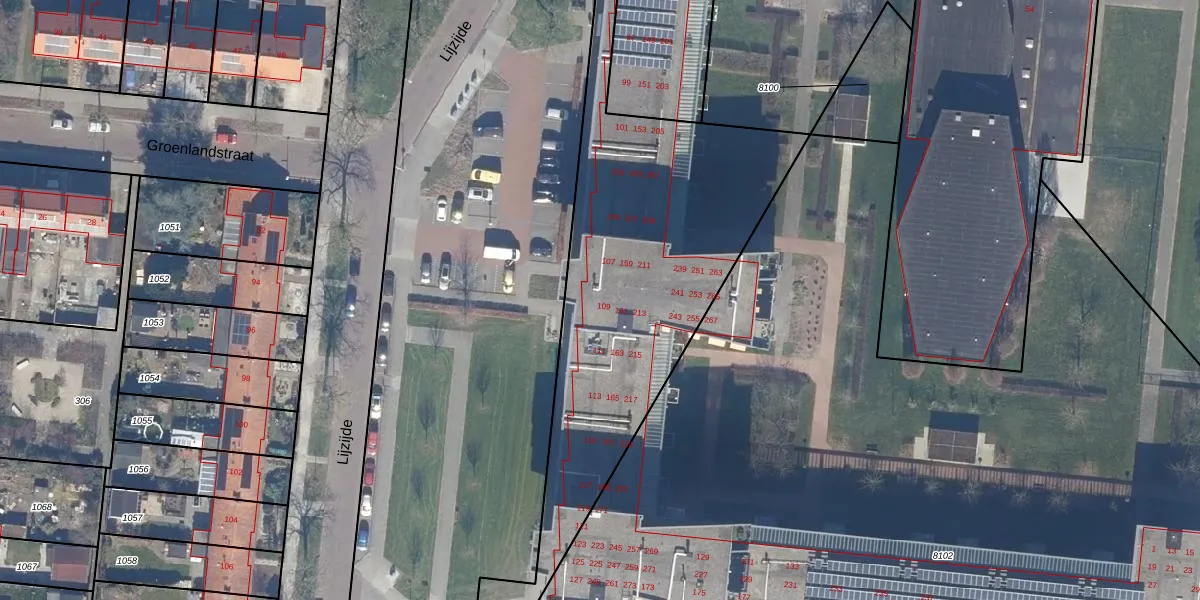 Het perceel waarop Lijzijde 163 staat heeft een oppervlakte van 1,4 ha. Dit is een zeer groot perceel. De perceeloppervlakte wordt geregistreerd door het Kadaster. Gedetailleerde informatie over de maten van dit perceel kunt u vinden in het rapport Kadastrale kaart met maatvoering van Lijzijde 163.