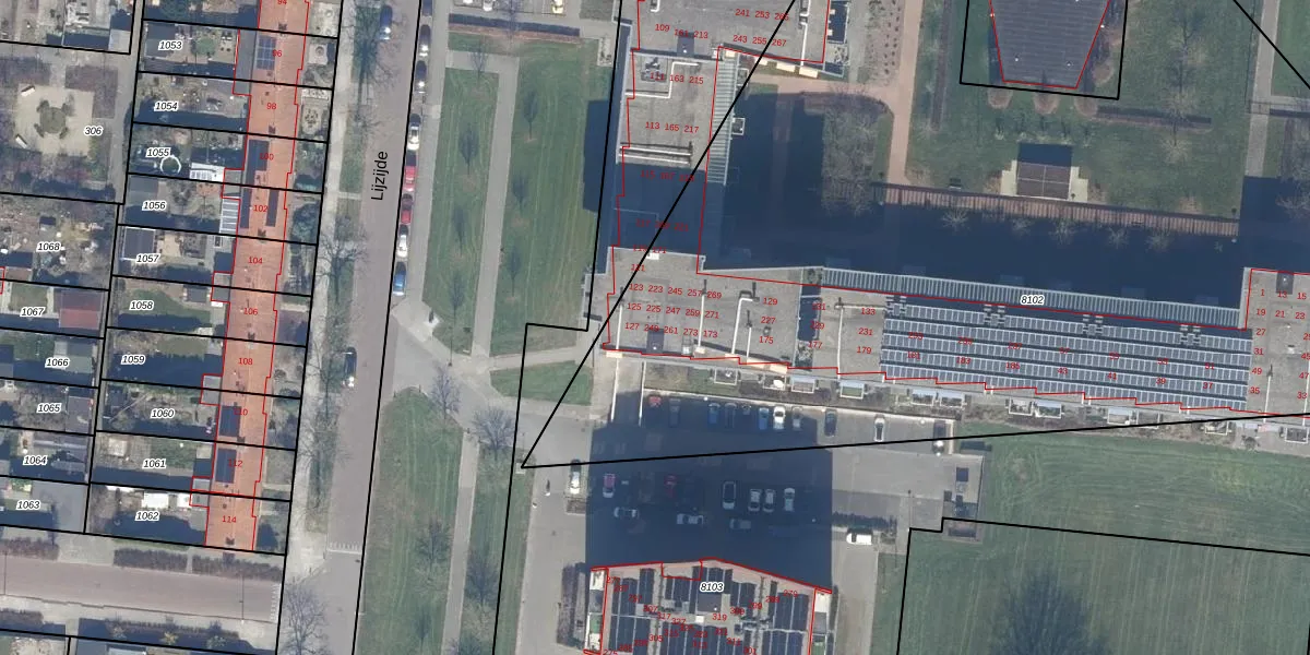 Het perceel waarop Lijzijde 247 staat heeft een oppervlakte van 7840 m². Dit is een zeer groot perceel. De perceeloppervlakte wordt geregistreerd door het Kadaster. Gedetailleerde informatie over de maten van dit perceel kunt u vinden in het rapport Kadastrale kaart met maatvoering van Lijzijde 247.