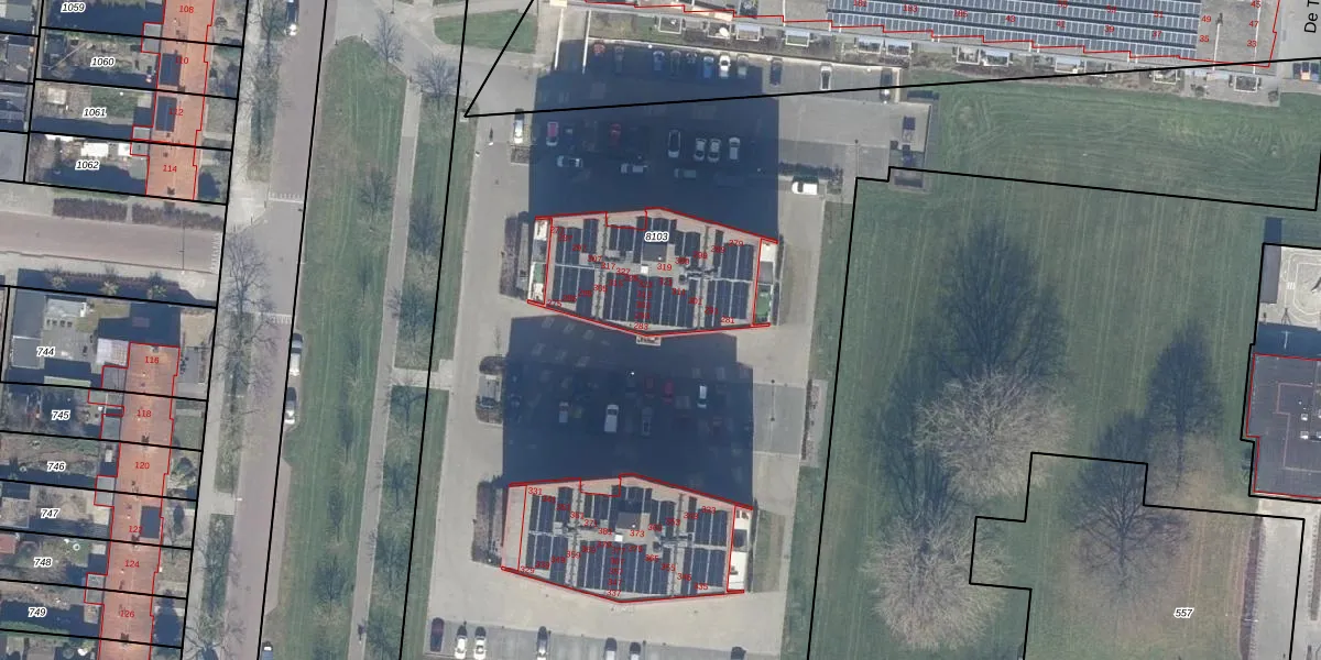 Het adres is gelegen op perceel 8103 in de sectie A en de kadastrale gemeente Dronten. De kadastrale aanduiding is aldus DTN01-A-8103. De gemiddelde perceelgrootte in Dronten is 1,8 ha. Dit perceel is kleiner: de perceeloppervlakte bedraagt 1,4 ha. De grootste perceeloppervlakte in de kadastrale gemeente is 25,03 km². De kleinste oppervlakte bedraagt 0 m². Er zijn 93 adressen aanwezig op het perceel. De huidige grenzen van het perceel zijn digitaal in de Basisregistratie Kadaster (BRK) geregistreerd op 03-03-2017.