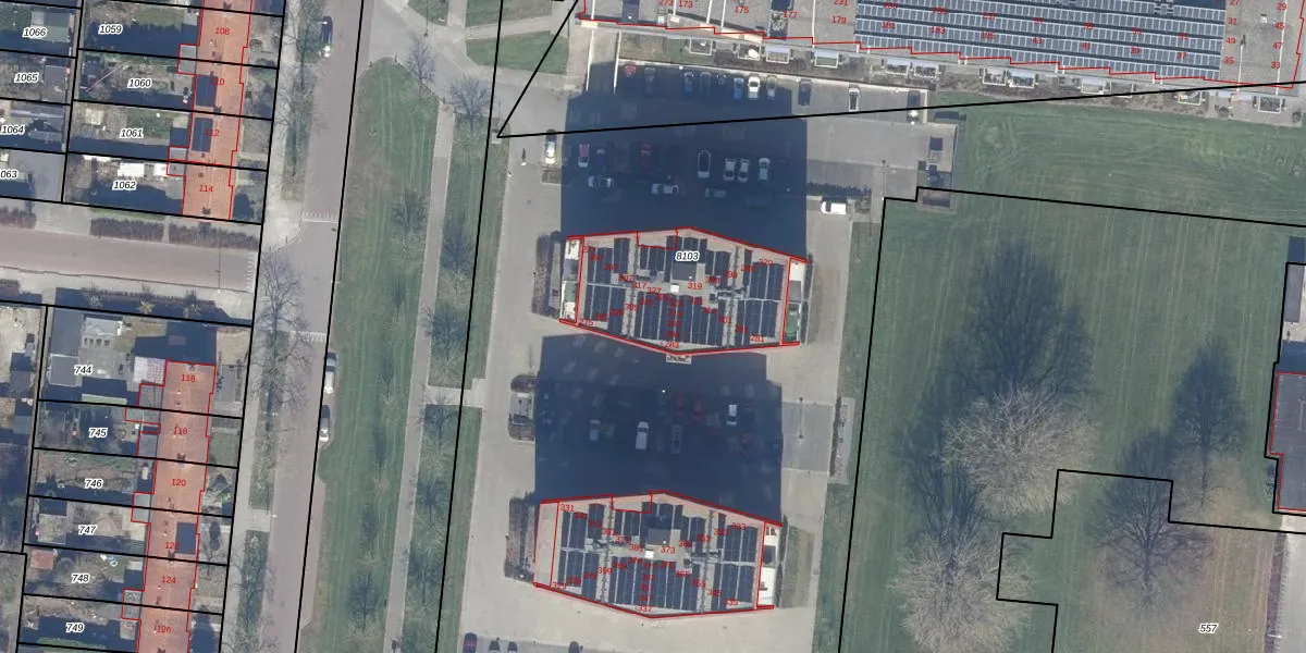 Het adres is gelegen op perceel 8103 in de sectie A en de kadastrale gemeente Dronten. De kadastrale aanduiding is aldus DTN01-A-8103. De gemiddelde perceelgrootte in Dronten is 1,8 ha. Dit perceel is kleiner: de perceeloppervlakte bedraagt 1,4 ha. De grootste perceeloppervlakte in de kadastrale gemeente is 25,03 km². De kleinste oppervlakte bedraagt 0 m². Op het perceel zijn 93 adressen aanwezig. De huidige grenzen van het perceel zijn digitaal in de Basisregistratie Kadaster (BRK) geregistreerd op 03-03-2017.