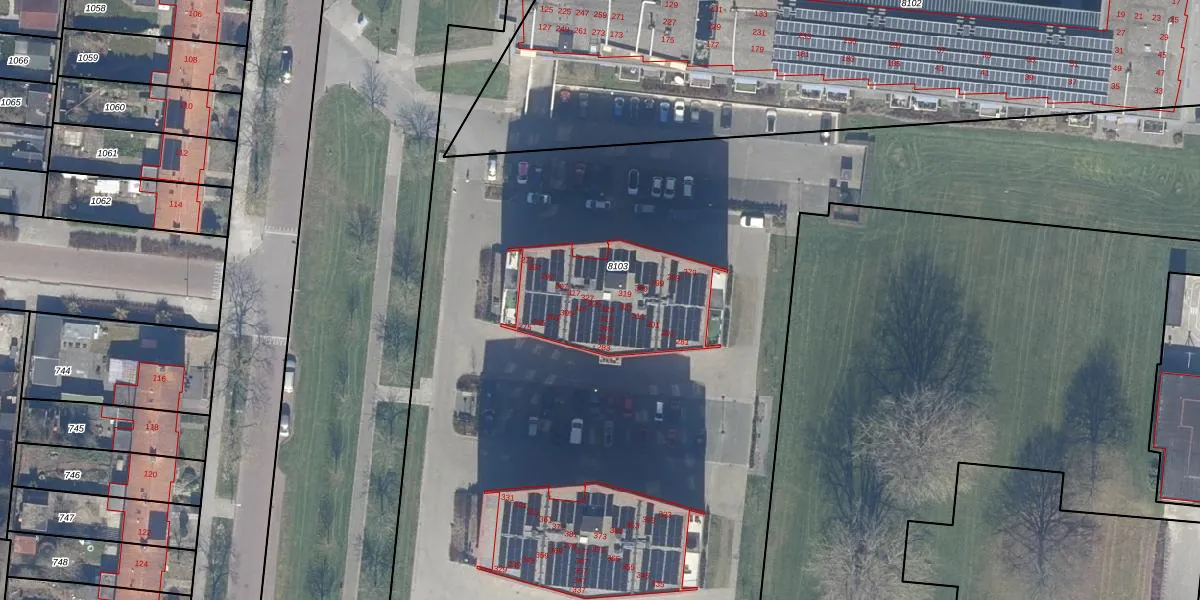 Het adres is gelegen op perceel 8103 in de sectie A en de kadastrale gemeente Dronten. De kadastrale aanduiding is aldus DTN01-A-8103. De gemiddelde perceelgrootte in Dronten is 1,8 ha. Dit perceel is kleiner: de perceeloppervlakte bedraagt 1,4 ha. De grootste perceeloppervlakte in de kadastrale gemeente is 25,03 km². De kleinste oppervlakte bedraagt 0 m². Op het perceel liggen in totaal 93 adressen. De huidige grenzen van het perceel zijn digitaal in de Basisregistratie Kadaster (BRK) geregistreerd op 03-03-2017.