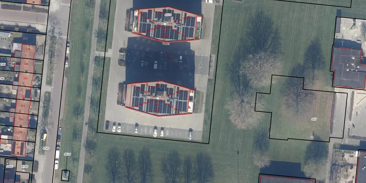 Het adres is gelegen op perceel 8103 in de sectie A en de kadastrale gemeente Dronten. De kadastrale aanduiding is aldus DTN01-A-8103. De gemiddelde perceelgrootte in Dronten is 1,8 ha. Dit perceel is kleiner: de perceeloppervlakte bedraagt 1,4 ha. De grootste perceeloppervlakte in de kadastrale gemeente is 25,03 km². De kleinste oppervlakte bedraagt 0 m². Op het perceel liggen in totaal 93 adressen. In de Basisregistratie Kadaster (BRK) werden de grenzen van het perceel geregistreerd op 03-03-2017.