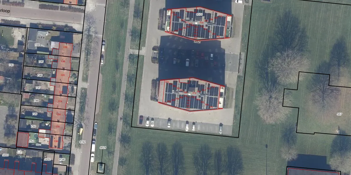 Het adres is gelegen op perceel 8103 in de sectie A en de kadastrale gemeente Dronten. De kadastrale aanduiding is aldus DTN01-A-8103. De gemiddelde perceelgrootte in Dronten is 1,8 ha. Dit perceel is kleiner: de perceeloppervlakte bedraagt 1,4 ha. De grootste perceeloppervlakte in de kadastrale gemeente is 25,03 km². De kleinste oppervlakte bedraagt 0 m². Op het perceel zijn 93 adressen aanwezig. De huidige grenzen van het perceel zijn digitaal in de Basisregistratie Kadaster (BRK) geregistreerd op 03-03-2017.