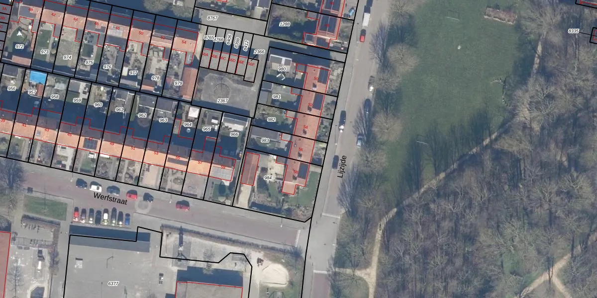 Het perceel waarop Lijzijde 56 staat heeft een oppervlakte van 211 m². Dit is een middelgroot perceel. De perceeloppervlakte wordt geregistreerd door het Kadaster. Gedetailleerde informatie over de maten van dit perceel kunt u vinden in het rapport Kadastrale kaart met maatvoering van Lijzijde 56.