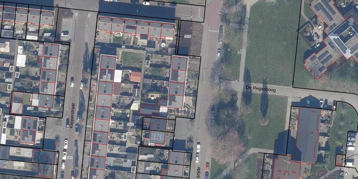 Het perceel waarop Lijzijde 64 staat heeft een oppervlakte van 5424 m². Dit is een zeer groot perceel. De perceeloppervlakte wordt geregistreerd door het Kadaster. Gedetailleerde informatie over de maten van dit perceel kunt u vinden in het rapport Kadastrale kaart met maatvoering van Lijzijde 64.
