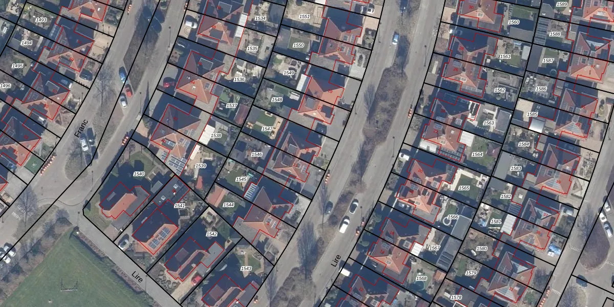 Het perceel waarop Lire 15 staat heeft een oppervlakte van 305 m². Dit is een groot perceel. De perceeloppervlakte wordt geregistreerd door het Kadaster. Gedetailleerde informatie over de maten van dit perceel kunt u vinden in het rapport Kadastrale kaart met maatvoering van Lire 15.