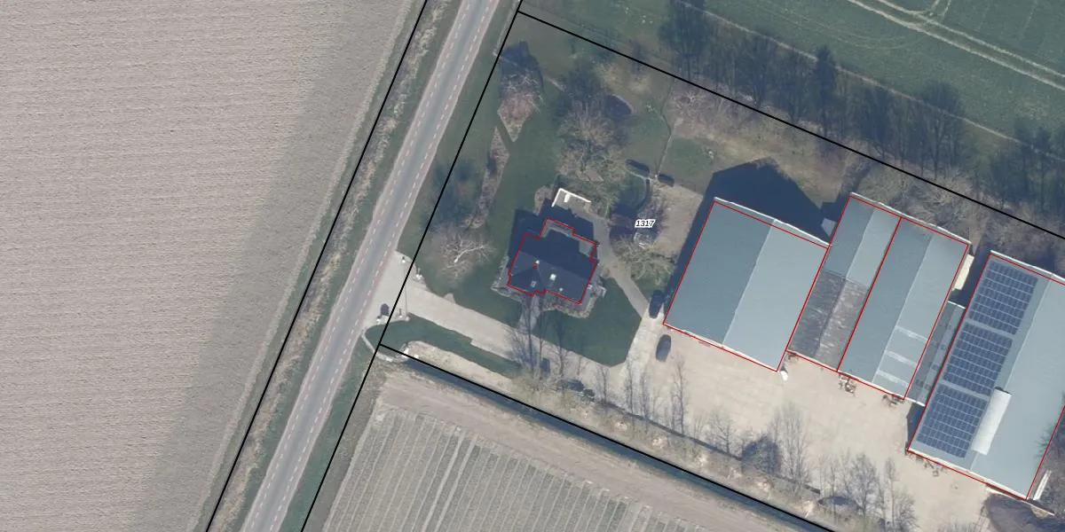 Het adres ligt op het perceel DTN01-B-1317, dat zich in de kadastrale gemeente Dronten bevindt. Het perceel is 8977 m² groot. Dat is kleiner dan de gemiddelde perceeloppervlakte in Dronten, dat op 1,8 ha ligt. De grootste perceeloppervlakte in de kadastrale gemeente is 25,03 km². De kleinste oppervlakte bedraagt 0 m². Dit is het enige adres dat aanwezig is op het perceel. De huidige grenzen van het perceel zijn digitaal in de Basisregistratie Kadaster (BRK) geregistreerd op 18-02-2015.