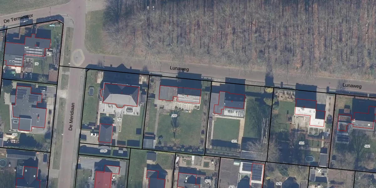 Het perceel waarop Lunaweg 4 staat heeft een oppervlakte van 1321 m². Dit is een zeer groot perceel. De perceeloppervlakte wordt geregistreerd door het Kadaster. Gedetailleerde informatie over de maten van dit perceel kunt u vinden in het rapport Kadastrale kaart met maatvoering van Lunaweg 4.