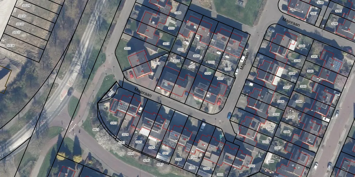 Het perceel waarop Majoraan 53 staat heeft een oppervlakte van 225 m². Dit is een middelgroot perceel. De perceeloppervlakte wordt geregistreerd door het Kadaster. Gedetailleerde informatie over de maten van dit perceel kunt u vinden in het rapport Kadastrale kaart met maatvoering van Majoraan 53.
