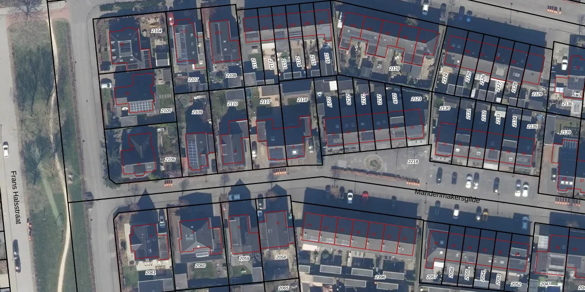 Het perceel waarop Mandenmakersgilde 9 staat heeft een oppervlakte van 354 m². Dit is een groot perceel. De perceeloppervlakte wordt geregistreerd door het Kadaster. Gedetailleerde informatie over de maten van dit perceel kunt u vinden in het rapport Kadastrale kaart met maatvoering van Mandenmakersgilde 9.