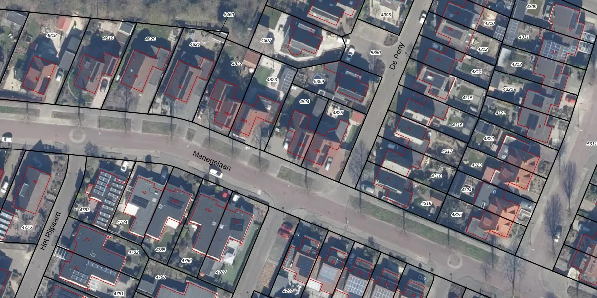 Het perceel waarop Manegelaan 26-B staat heeft een oppervlakte van 332 m². Dit is een groot perceel. De perceeloppervlakte wordt geregistreerd door het Kadaster. Gedetailleerde informatie over de maten van dit perceel kunt u vinden in het rapport Kadastrale kaart met maatvoering van Manegelaan 26-B.