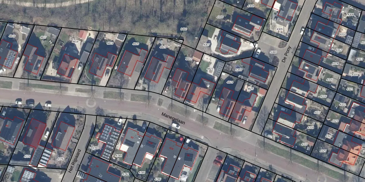 Het perceel waarop Manegelaan 28-B staat heeft een oppervlakte van 389 m². Dit is een groot perceel. De perceeloppervlakte wordt geregistreerd door het Kadaster. Gedetailleerde informatie over de maten van dit perceel kunt u vinden in het rapport Kadastrale kaart met maatvoering van Manegelaan 28-B.