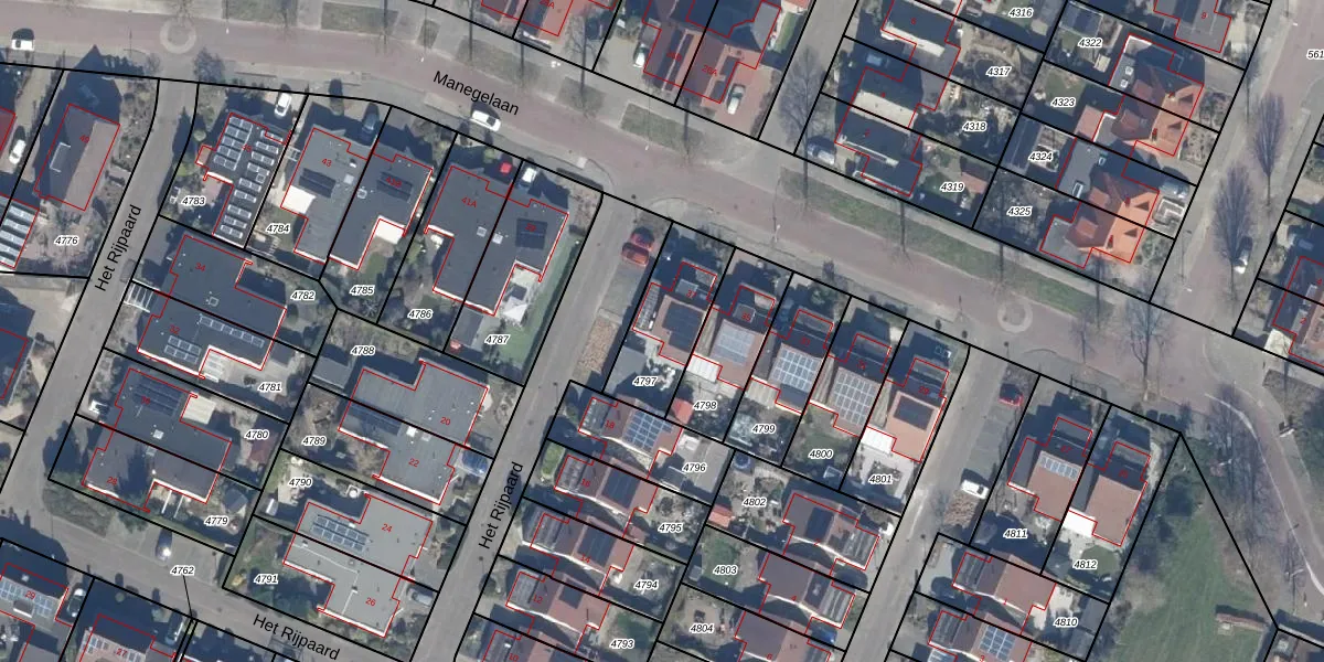 Het perceel waarop Manegelaan 37 staat heeft een oppervlakte van 288 m². Dit is een middelgroot perceel. De perceeloppervlakte wordt geregistreerd door het Kadaster. Gedetailleerde informatie over de maten van dit perceel kunt u vinden in het rapport Kadastrale kaart met maatvoering van Manegelaan 37.