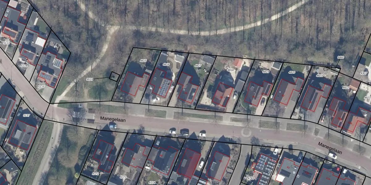 Het perceel waarop Manegelaan 38 staat heeft een oppervlakte van 446 m². Dit is een groot perceel. De perceeloppervlakte wordt geregistreerd door het Kadaster. Gedetailleerde informatie over de maten van dit perceel kunt u vinden in het rapport Kadastrale kaart met maatvoering van Manegelaan 38.