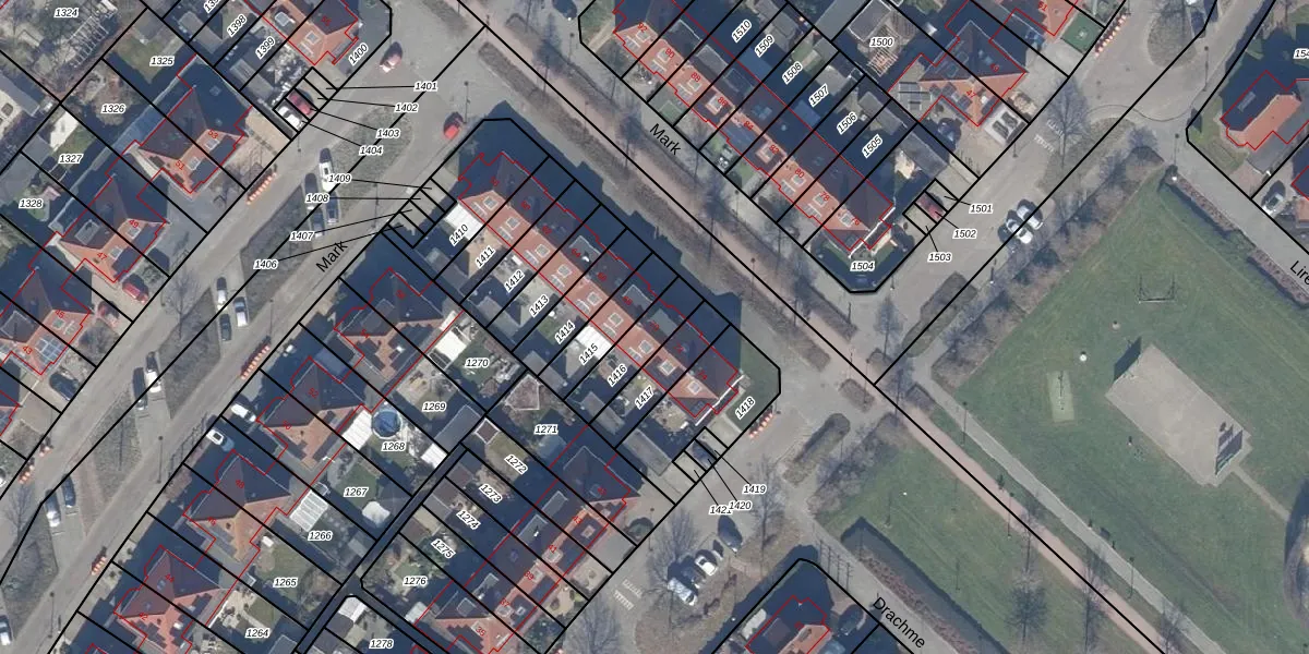 Het perceel waarop Mark 70 staat heeft een oppervlakte van 141 m². Dit is een middelgroot perceel. De perceeloppervlakte wordt geregistreerd door het Kadaster. Gedetailleerde informatie over de maten van dit perceel kunt u vinden in het rapport Kadastrale kaart met maatvoering van Mark 70.