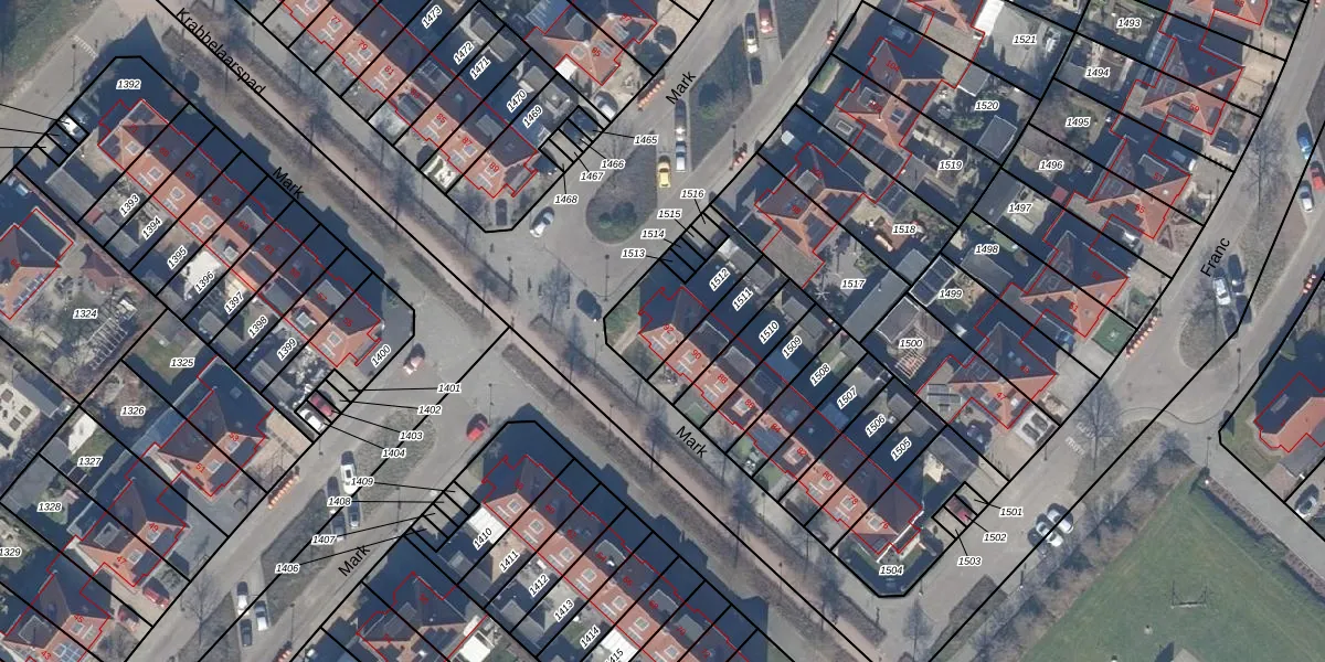 Het perceel waarop Mark 92 staat heeft een oppervlakte van 233 m². Dit is een middelgroot perceel. De perceeloppervlakte wordt geregistreerd door het Kadaster. Gedetailleerde informatie over de maten van dit perceel kunt u vinden in het rapport Kadastrale kaart met maatvoering van Mark 92.