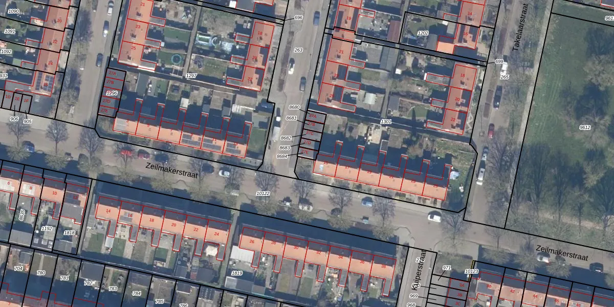 Het perceel waarop Mastmakerstraat 27-E staat heeft een oppervlakte van 20 m². Dit is een klein perceel. De perceeloppervlakte wordt geregistreerd door het Kadaster. Gedetailleerde informatie over de maten van dit perceel kunt u vinden in het rapport Kadastrale kaart met maatvoering van Mastmakerstraat 27-E.