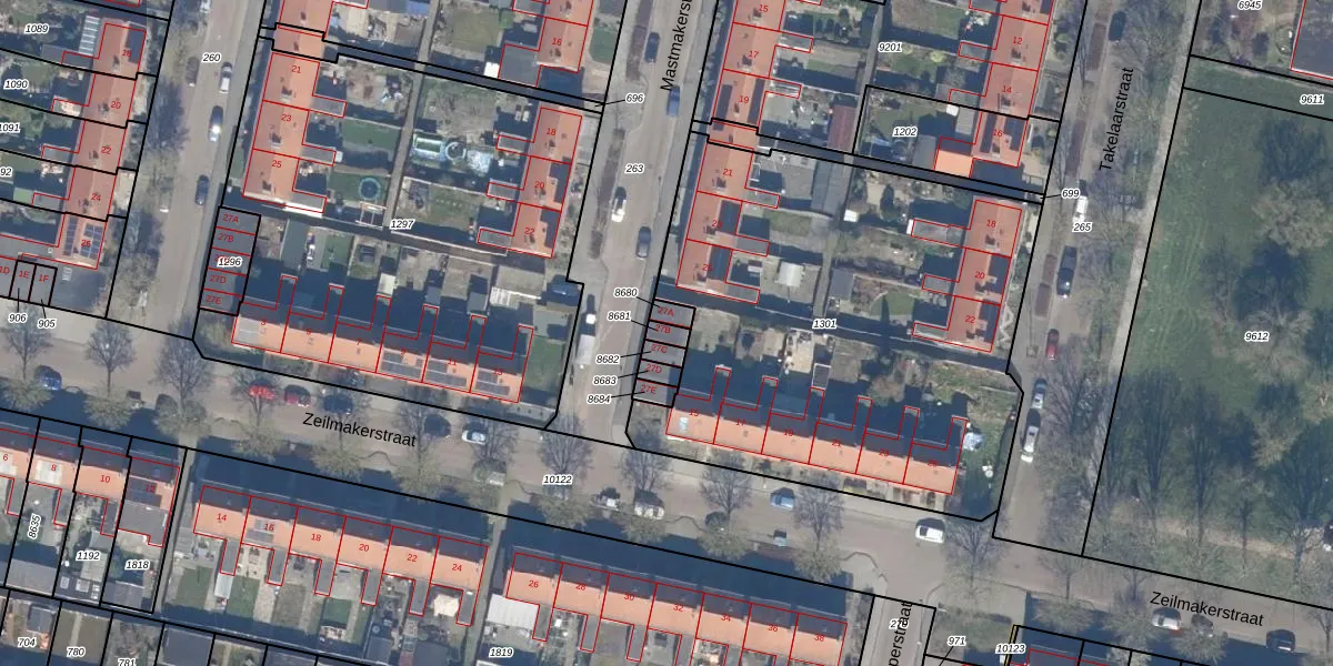 Het perceel waarop Mastmakerstraat 27-B staat heeft een oppervlakte van 19 m². Dit is een klein perceel. De perceeloppervlakte wordt geregistreerd door het Kadaster. Gedetailleerde informatie over de maten van dit perceel kunt u vinden in het rapport Kadastrale kaart met maatvoering van Mastmakerstraat 27-B.