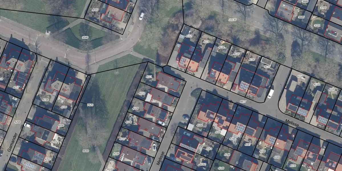 Het perceel waarop Melisse 14 staat heeft een oppervlakte van 286 m². Dit is een middelgroot perceel. De perceeloppervlakte wordt geregistreerd door het Kadaster. Gedetailleerde informatie over de maten van dit perceel kunt u vinden in het rapport Kadastrale kaart met maatvoering van Melisse 14.