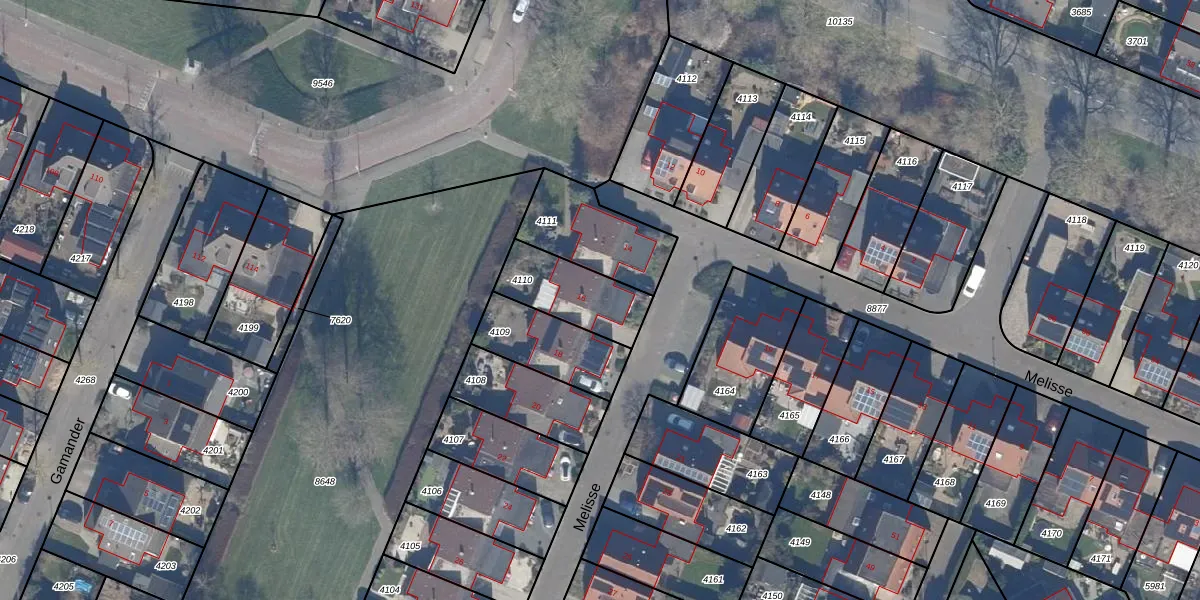 Het perceel waarop Melisse 16 staat heeft een oppervlakte van 238 m². Dit is een middelgroot perceel. De perceeloppervlakte wordt geregistreerd door het Kadaster. Gedetailleerde informatie over de maten van dit perceel kunt u vinden in het rapport Kadastrale kaart met maatvoering van Melisse 16.
