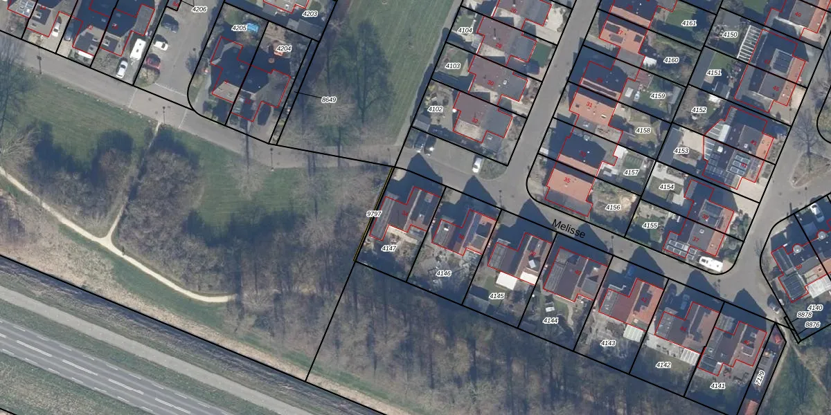 Het perceel waarop Melisse 34 staat heeft een oppervlakte van 331 m². Dit is een groot perceel. De perceeloppervlakte wordt geregistreerd door het Kadaster. Gedetailleerde informatie over de maten van dit perceel kunt u vinden in het rapport Kadastrale kaart met maatvoering van Melisse 34.