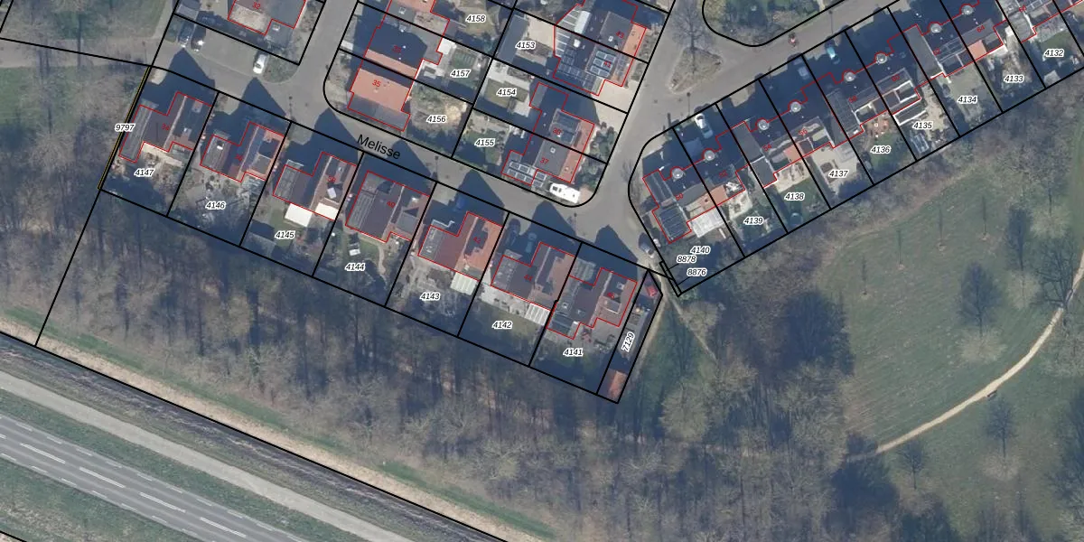 Het perceel waarop Melisse 44 staat heeft een oppervlakte van 360 m². Dit is een groot perceel. De perceeloppervlakte wordt geregistreerd door het Kadaster. Gedetailleerde informatie over de maten van dit perceel kunt u vinden in het rapport Kadastrale kaart met maatvoering van Melisse 44.