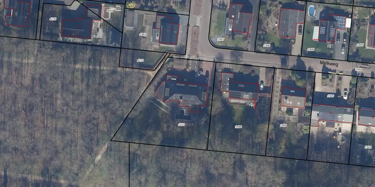 Het perceel waarop Melkweg 8 staat heeft een oppervlakte van 1853 m². Dit is een zeer groot perceel. De perceeloppervlakte wordt geregistreerd door het Kadaster. Gedetailleerde informatie over de maten van dit perceel kunt u vinden in het rapport Kadastrale kaart met maatvoering van Melkweg 8.