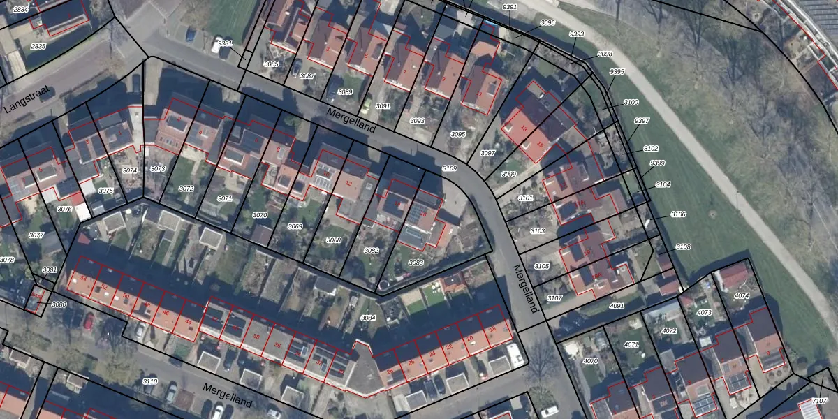 Het perceel waarop Mergelland 16 staat heeft een oppervlakte van 429 m². Dit is een groot perceel. De perceeloppervlakte wordt geregistreerd door het Kadaster. Gedetailleerde informatie over de maten van dit perceel kunt u vinden in het rapport Kadastrale kaart met maatvoering van Mergelland 16.