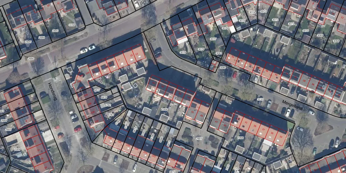 Het perceel waarop Mergelland 57 staat heeft een oppervlakte van 2431 m². Dit is een zeer groot perceel. De perceeloppervlakte wordt geregistreerd door het Kadaster. Gedetailleerde informatie over de maten van dit perceel kunt u vinden in het rapport Kadastrale kaart met maatvoering van Mergelland 57.