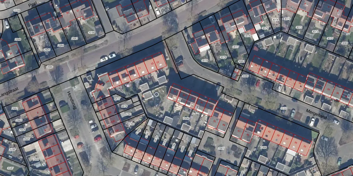 Het perceel waarop Mergelland 61 staat heeft een oppervlakte van 2431 m². Dit is een zeer groot perceel. De perceeloppervlakte wordt geregistreerd door het Kadaster. Gedetailleerde informatie over de maten van dit perceel kunt u vinden in het rapport Kadastrale kaart met maatvoering van Mergelland 61.