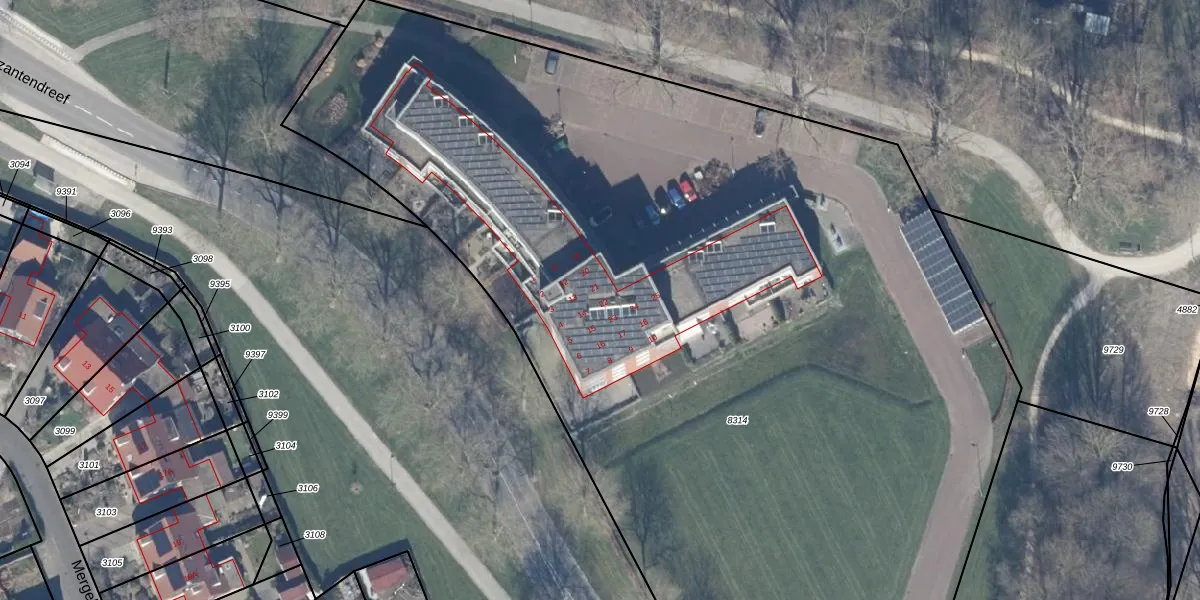 Het perceel waarop Noordenveld 25 staat heeft een oppervlakte van 8134 m². Dit is een zeer groot perceel. De perceeloppervlakte wordt geregistreerd door het Kadaster. Gedetailleerde informatie over de maten van dit perceel kunt u vinden in het rapport Kadastrale kaart met maatvoering van Noordenveld 25.