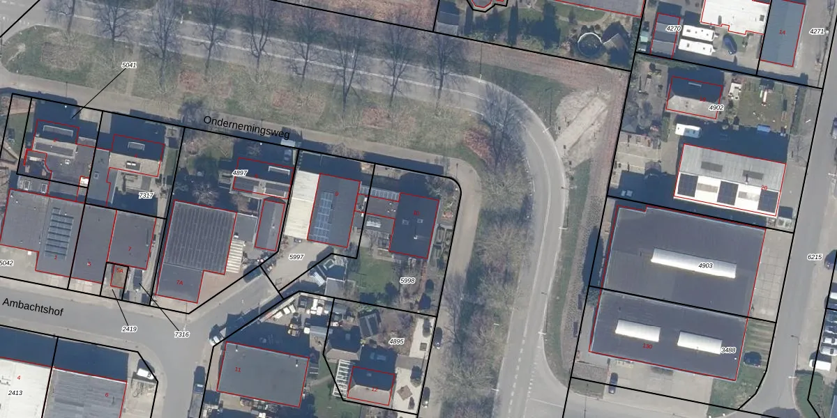 Het perceel waarop Ondernemingsweg 10 staat heeft een oppervlakte van 835 m². Dit is een groot perceel. De perceeloppervlakte wordt geregistreerd door het Kadaster. Gedetailleerde informatie over de maten van dit perceel kunt u vinden in het rapport Kadastrale kaart met maatvoering van Ondernemingsweg 10.